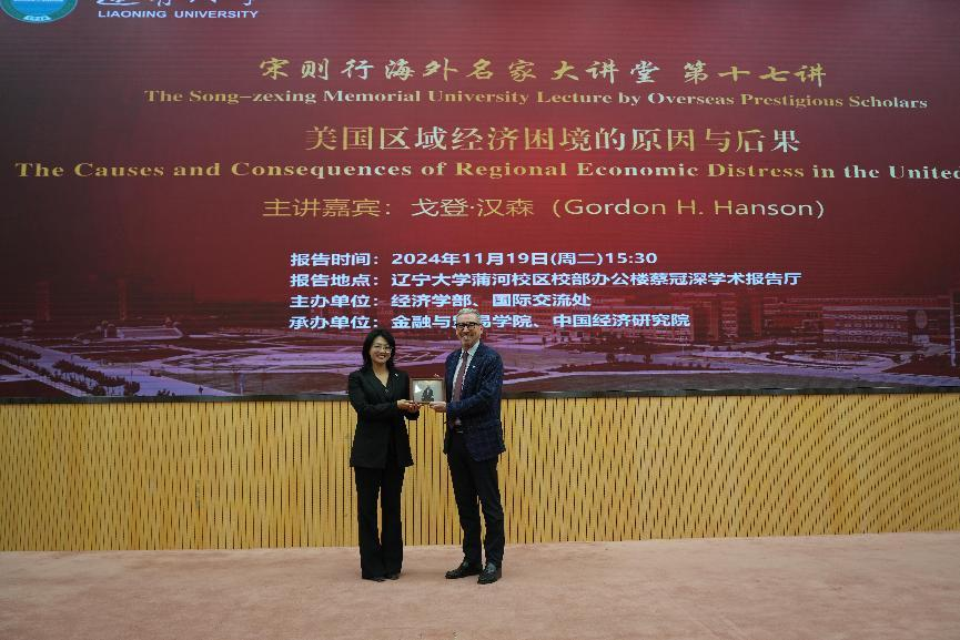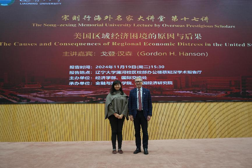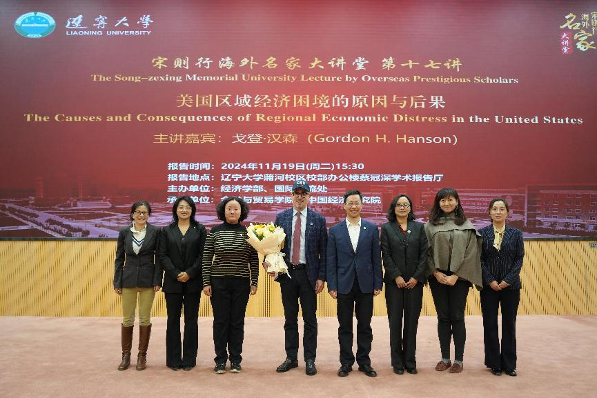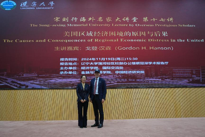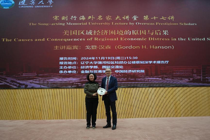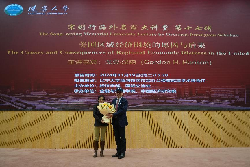 11月19日下午,永利官网宋则行海外名家大讲堂(第十七讲)在蒲河校区校部办公楼二楼蔡冠深学术报告厅举行。哈佛大学肯尼迪学院戈登・汉森教授应邀作题为《美国地区经济困境的原因与后果》的学术报告。第十四届全国人大代表,辽宁省第十四届人大常委会委员,永利官网党委副书记、校长余淼杰出席报告会并致辞,副校长李宇鹏、仇焕广出席报告会,国际交流处处长谢名一、永利集团304副主任王伟光、中国经济研究院副院长兼金融与贸易学院副院长马湘君、国际交流处副处长尹如玉、永利集团304办公室主任孔晓参加报告会。报告会由仇焕广主持。
