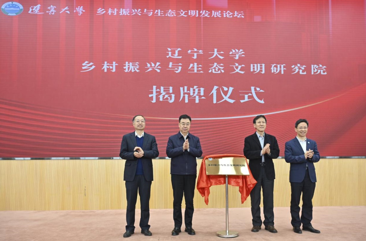 开幕式上举行了乡村振兴与生态文明研究院揭牌仪式。辽宁省副省长李强、永利官网党委书记潘一山和中国农业大学原校长柯炳生、永利官网校长余淼杰共同为研究院进行揭牌,标志着我校专门开展乡村振兴与生态文明研究的科研机构正式成立。