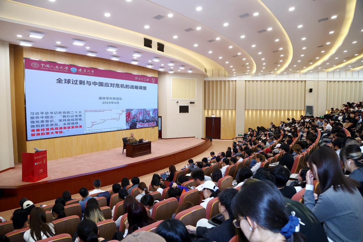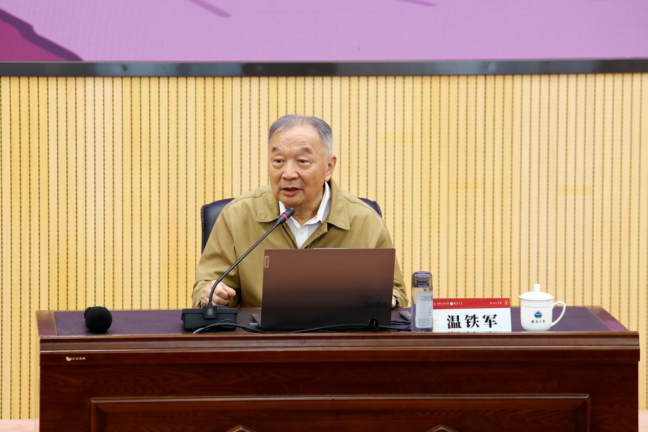 报告会上,温铁军教授指出,资本主义已从产业资本阶段演进至金融资本全球化阶段,美欧金融集团间的博弈成为世界主要矛盾。为应对此变局,我国采取了供给侧结构性改革以及逆周期和跨周期调节等措施。他还提出,以国内大循环为主体的新发展格局应当落脚于打造面向生态文明的“第三资产池”,以乡村振兴为牵引,推动生态产业化、产业生态化和生态资本化,实现山水田林湖草等生态资源的价值化,拓展县域经济新空间;要以更为审慎的策略优化“走出去”路径,为中国式现代化提供可持续的制度与实践支撑。最后,与会师生通过问答互动,与温教授进行了深入交流。