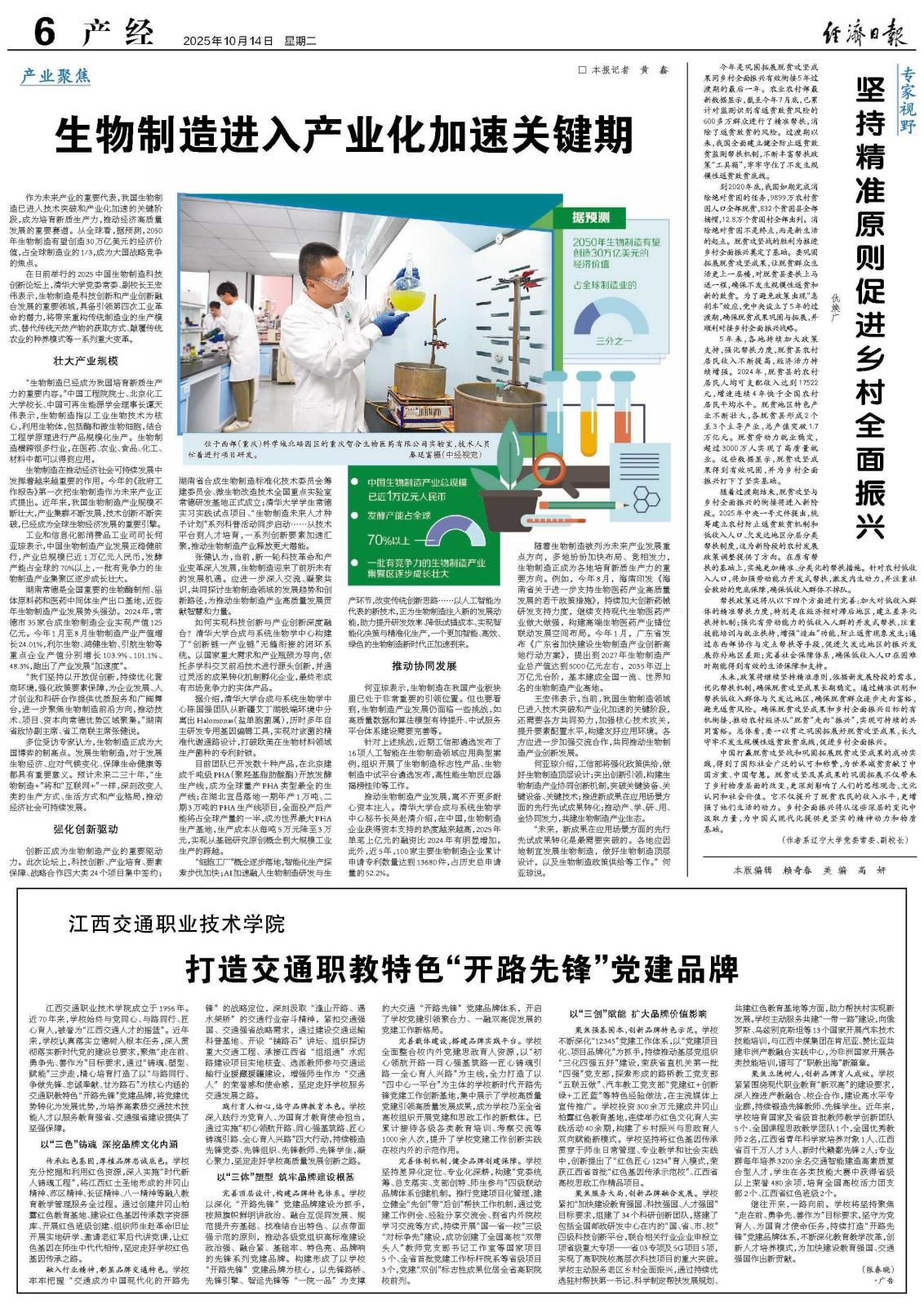 2025年10月14日,永利官网党委常委、副校长仇焕广教授在《经济日报》发表理论文章《坚持精准原则促进乡村全面振兴》。