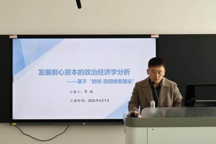 经济学院贺城老师以《耐心资本的政治经济学分析——基于“时间-空间修复理论”》为题开展学术报告。他指出,发展耐心资本作为中国对资本治理范式的创新性探索,是对社会主义市场经济条件下资本“时间压缩”与“空间剥夺”逻辑的双重修正。在时间维度上,耐心资本以长期投资导向取代金融化“时间压缩”,将资本周转节奏锚定于技术创新的自然周期;在空间维度上,耐心资本通过产业布局与区域协调发展,以抽象空间拓展和共同富裕目标代替地理扩张逻辑。耐心资本是21世纪马克思主义资本理论的创造性转化与创新性发展,为破解全球资本过剩危机提供了兼具理论深度与实践价值的中国方案。