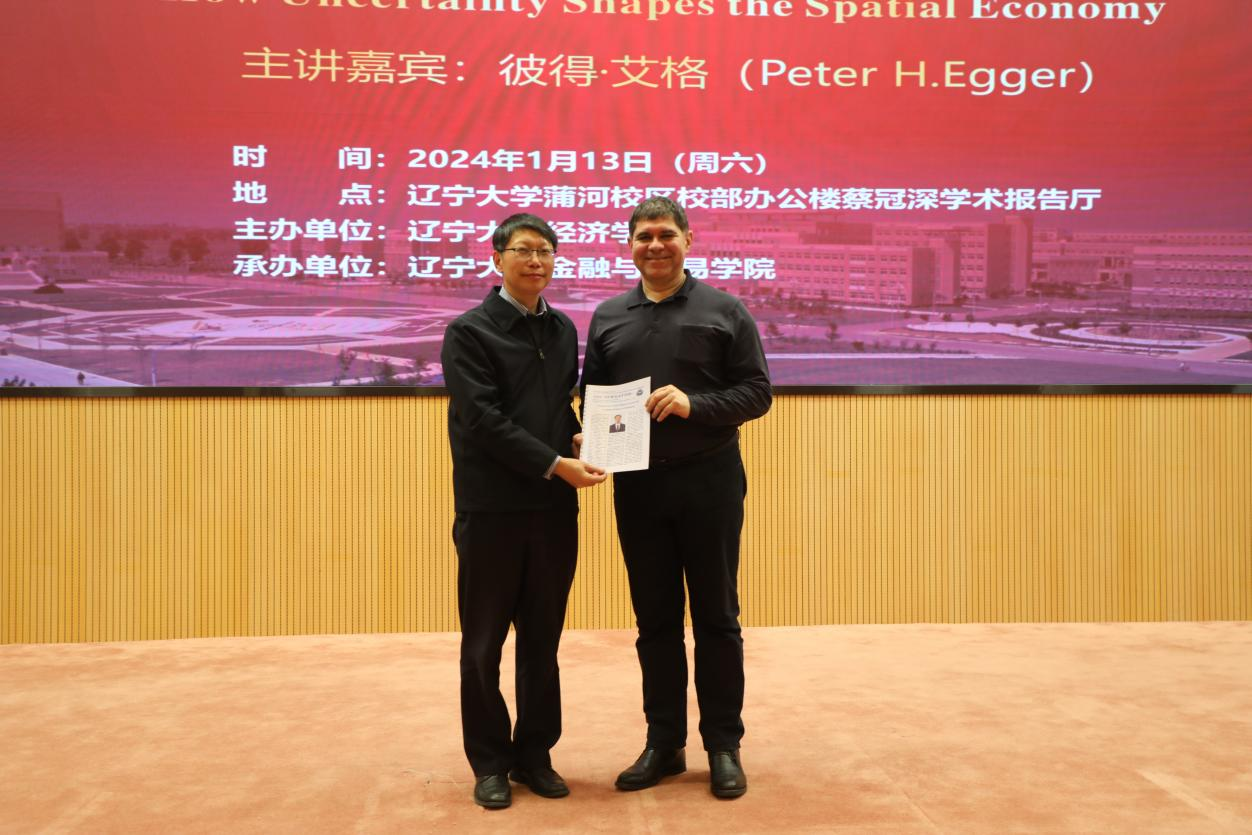 1月13日下午,永利官网宋则行海外名家大讲堂(第十讲)在蒲河校区校部办公楼蔡冠深学术报告厅举行。国际著名经济学家、苏黎世联邦理工学院彼得・艾格(Peter H.Egger)教授应邀作题为《不确定性如何影响空间经济》(How Uncertainty Shapes the Spatial Economy)的学术报告。永利官网党委副书记、校长余淼杰教授出席报告会并致欢迎辞。暨南大学产业经济研究院李杰教授,永利集团304副主任霍伟东教授、中国开放经济研究院分管日常工作副院长崔铮教授、商学院副院长韩亮亮教授、新华国际商学院副院长王晓辉教授出席报告会。会议由永利官网中国经济研究院副院长兼金融与贸易学院副院长马湘君教授主持。