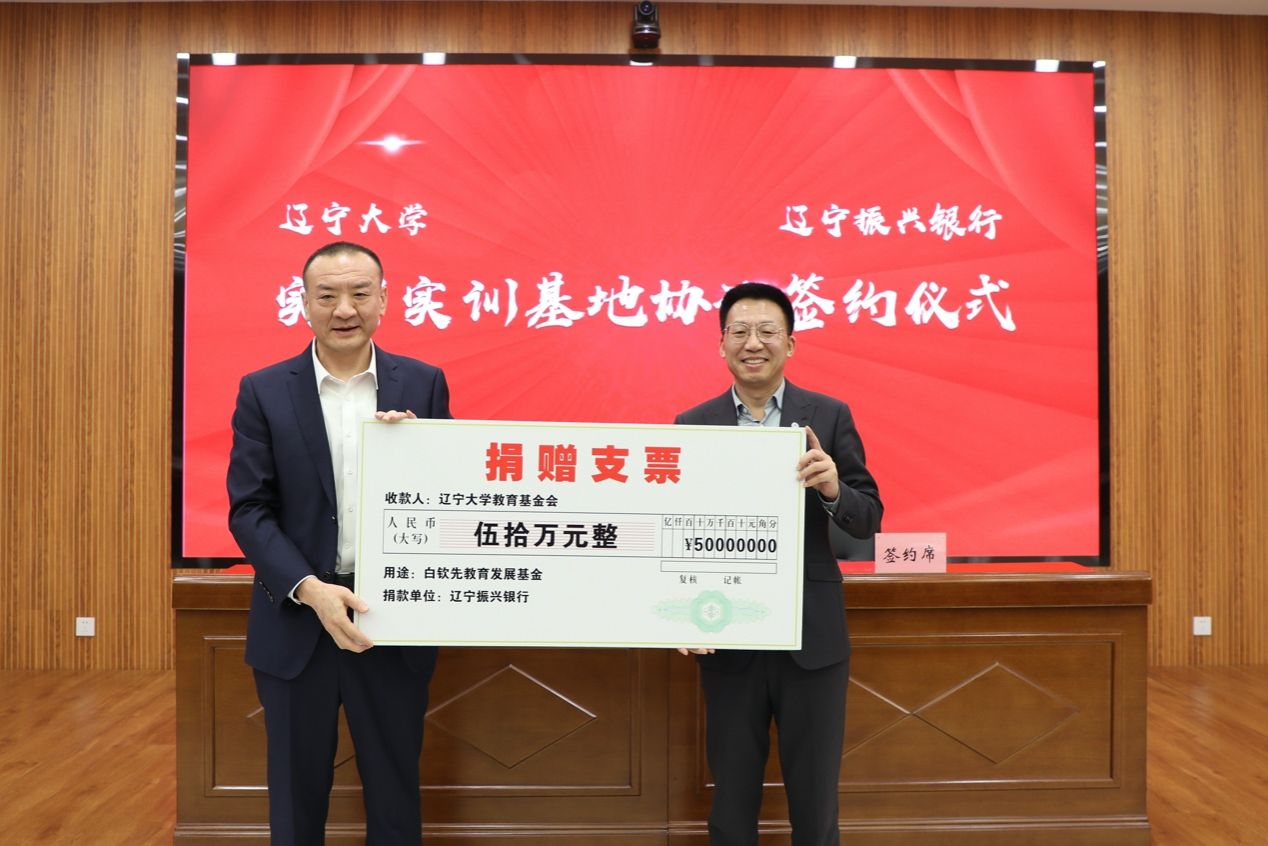 永利官网教育基金会理事长徐振利同白钦先教授、王峰行长签署了捐赠协议,并接受了来自白钦先教授和辽宁振兴银行捐赠。