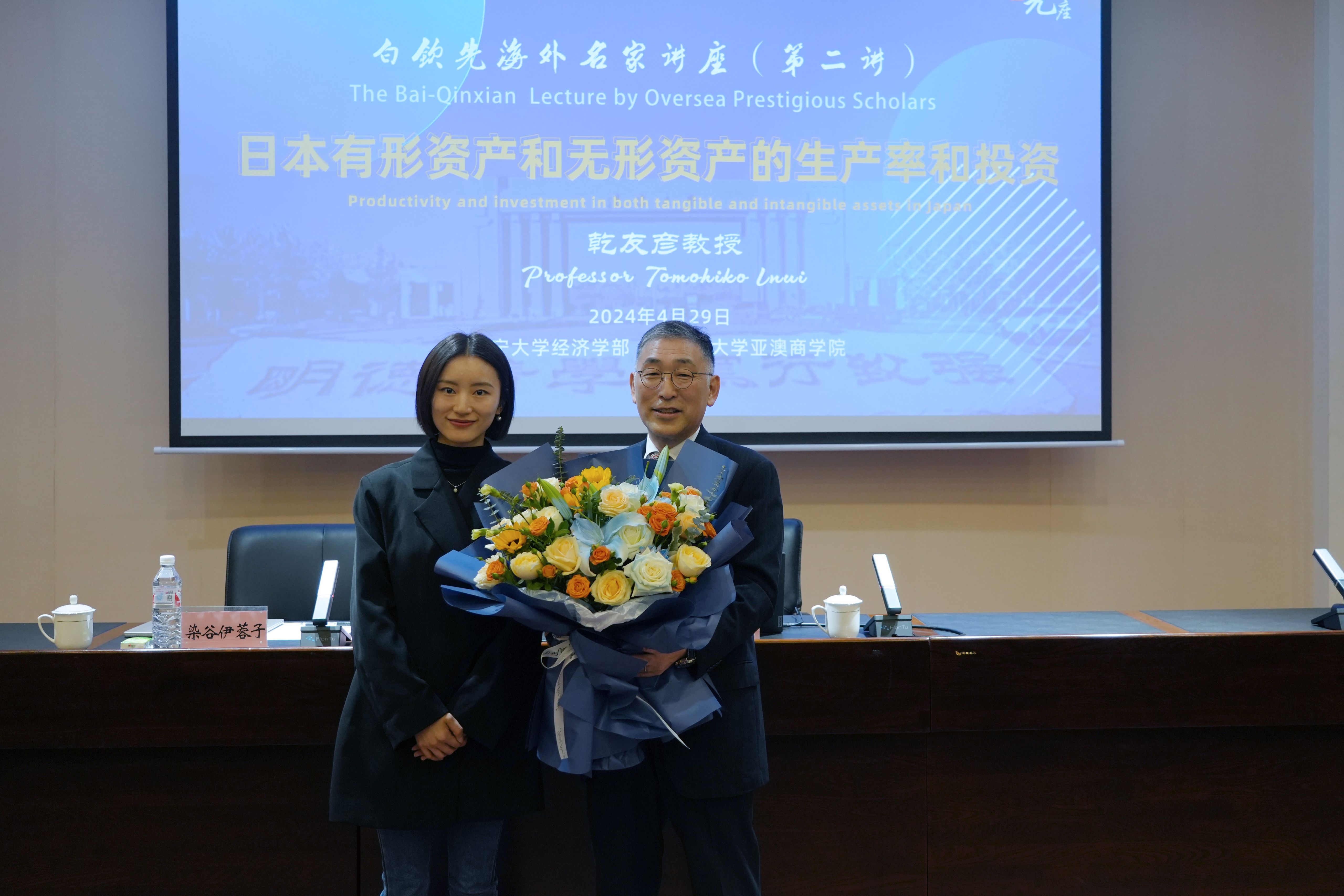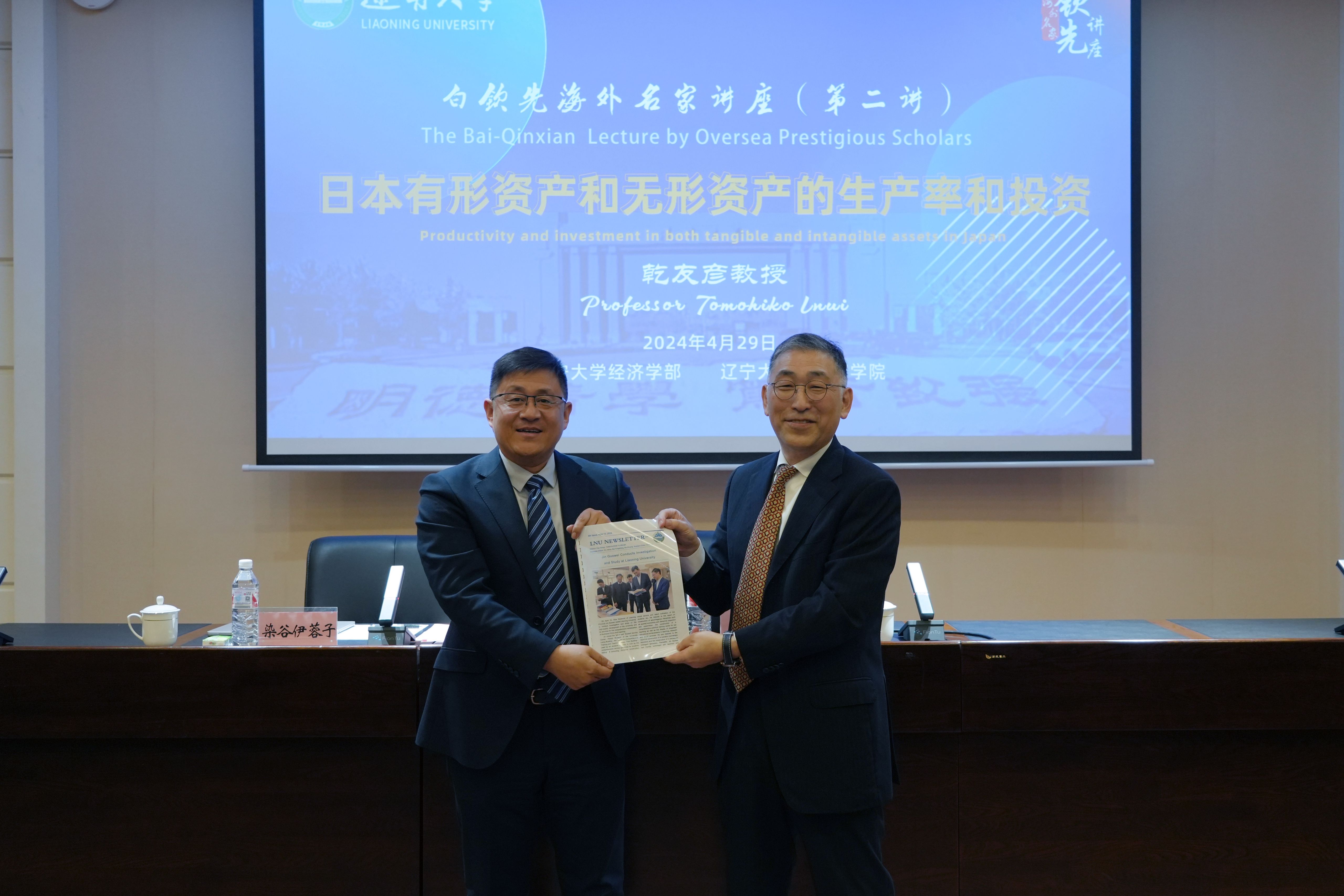 4月29日上午,永利官网白钦先海外名家讲座(第二讲)在蒲河校区校部办公楼113会议室举行。日本学习院大学乾友彦(Tomohiko Inui)教授应邀作了题为《日本有形资产和无形资产的生产率和投资》(Productivity and investment in both tangible and intangible assets in Japan)的学术报告。第十四届全国人大代表,国际经济学会会士,永利官网党委副书记、校长余淼杰教授出席报告会并致欢迎辞。会议由亚澳商学院院长赵德起教授主持。