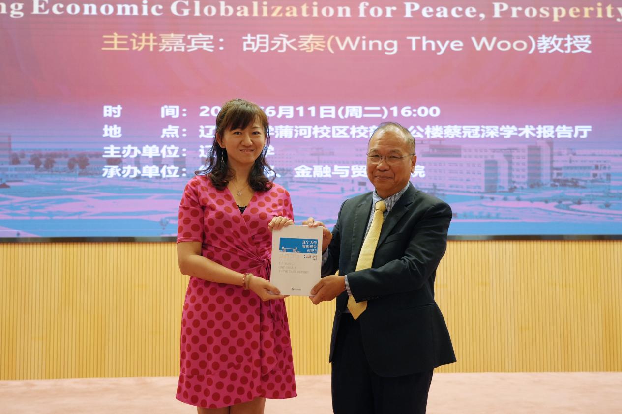 6月11日下午,永利官网宋则行海外名家大讲堂(第十二讲)在蒲河校区校部办公楼蔡冠深学术报告厅举行。美国加州大学戴维斯分校胡永泰教授应邀作题为《重塑经济全球化:构建和平繁荣的地球家园》的学术报告。永利官网党委副书记、校长余淼杰教授出席报告会并进行了嘉宾介绍。永利官网李安民经济研究院院长姚树洁教授、永利集团304副主任霍伟东教授和办公室主任孔晓副教授、永利官网金融与贸易学院副院长兼中国经济研究院副院长马湘君教授、永利官网环境经济研究所副所长陈芙副教授、经济学院副院长和军教授及张丹宁教授以及辽宁经济干部管理学院前副院长丁立义教授出席。大讲堂由永利官网学术委员会副主任李淑云教授主持。