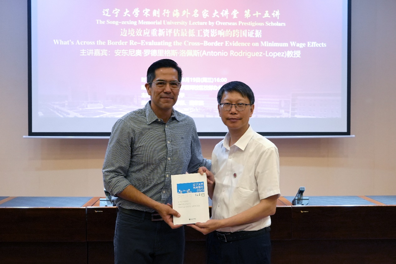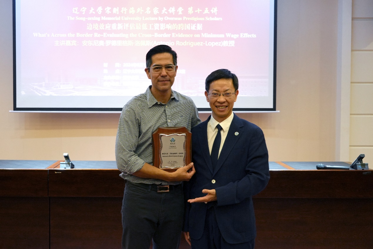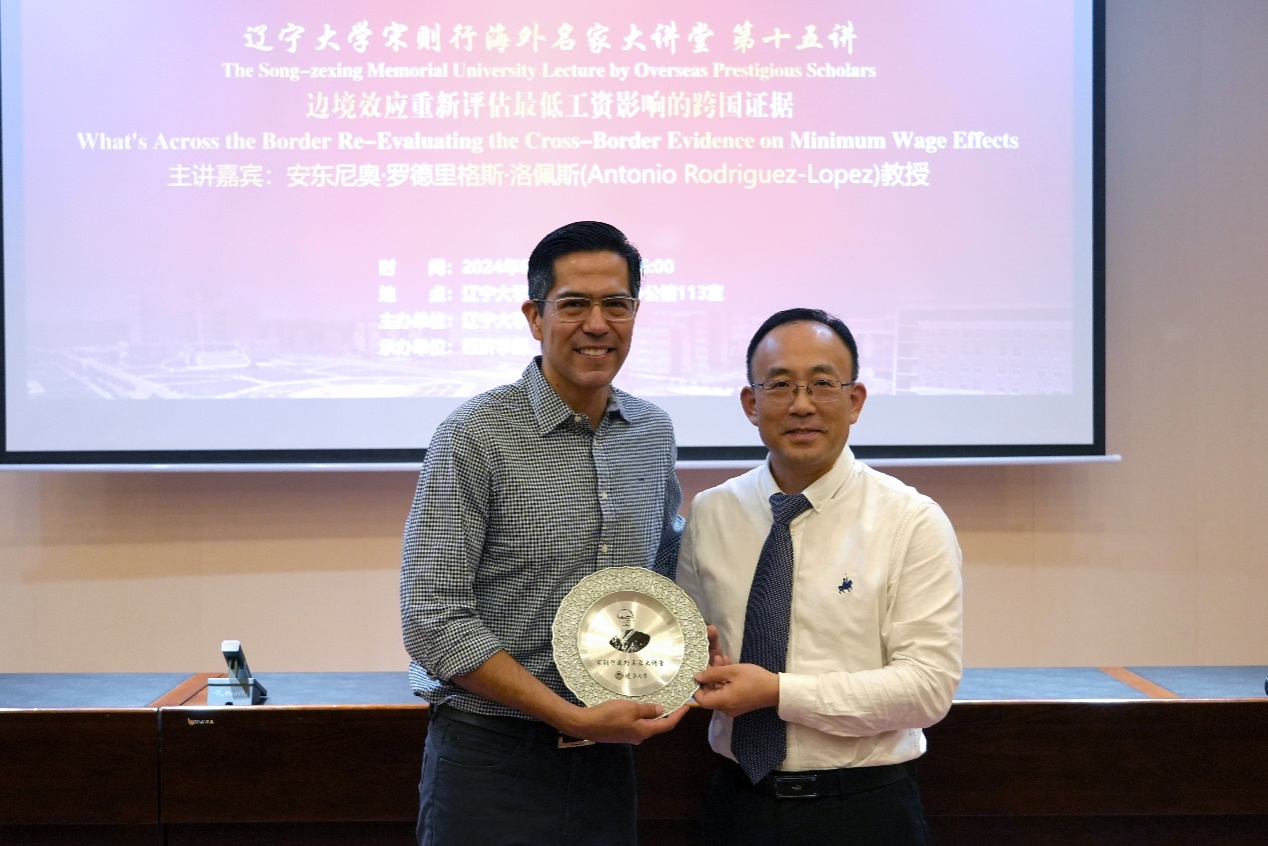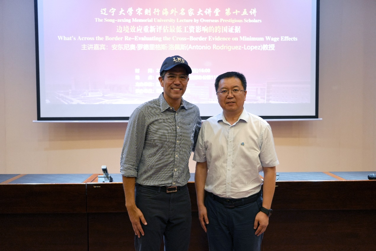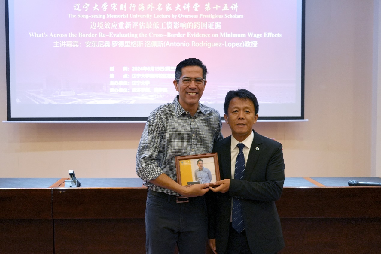 6月19日下午,永利官网宋则行海外名家大讲堂(第十五讲)在永利官网蒲河校区校部办公楼113室举行。加州大学欧文分校安东尼奥・罗德里格斯・洛佩斯教授应邀作了题为《What's Across the Border? Re-Evaluating the Cross-Border Evidence on Minimum Wage Effects》的学术报告。永利官网党委副书记、校长余淼杰教授出席大讲堂并进行了嘉宾介绍。永利官网副校长仇焕广教授主持讲座。永利集团304120多位师生参加了讲座活动。