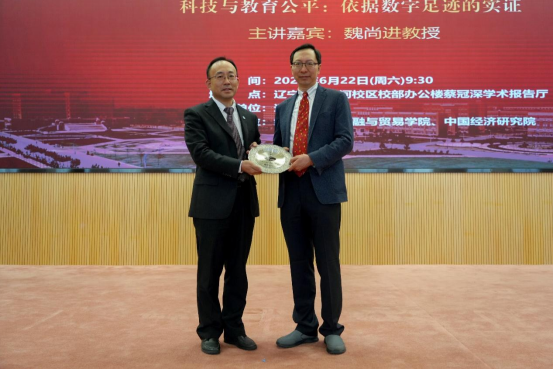 6月22日上午,永利官网宋则行海外名家大讲堂(第十六讲)在蒲河校区校部办公楼蔡冠深学术报告厅举行。美国哥伦比亚大学魏尚进教授应邀作题为《科技与教育公平:依据数字足迹的实证》的学术报告。永利官网党委副书记、校长余淼杰教授出席讲座并致辞,美国弗吉尼亚理工大学未来工作场所与实践研究中心主任葛苏勤教授、永利集团304副主任霍伟东教授、《永利官网学报》编辑部主任刘钧霆教授、中国经济研究院副院长兼金融与贸易学院副院长马湘君教授、金融与贸易学院副院长李丹教授、李安民经济研究院副院长游宇教授出席讲座。本次大讲堂由永利官网副校长仇焕广教授主持。