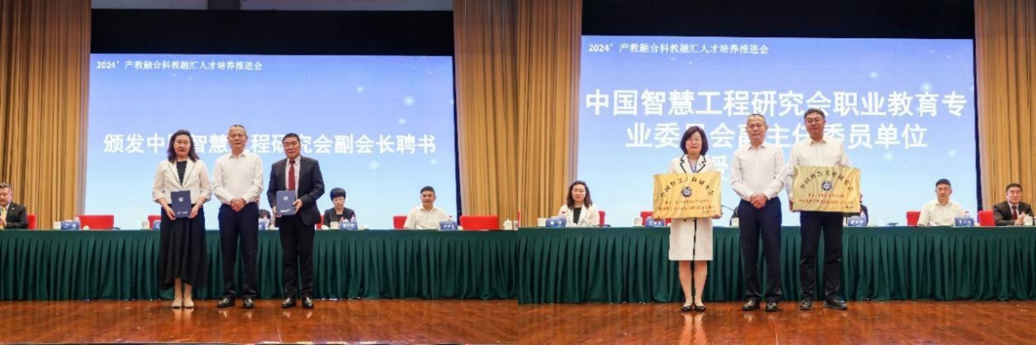 会上,王金宝为沈阳职业技术学院、天津渤海职业技术学院授中国智慧工程研究会职业教育专业委员会副主任委员单位铜牌,为李树英、邢晖颁发中国智慧工程研究会副会长聘书。
