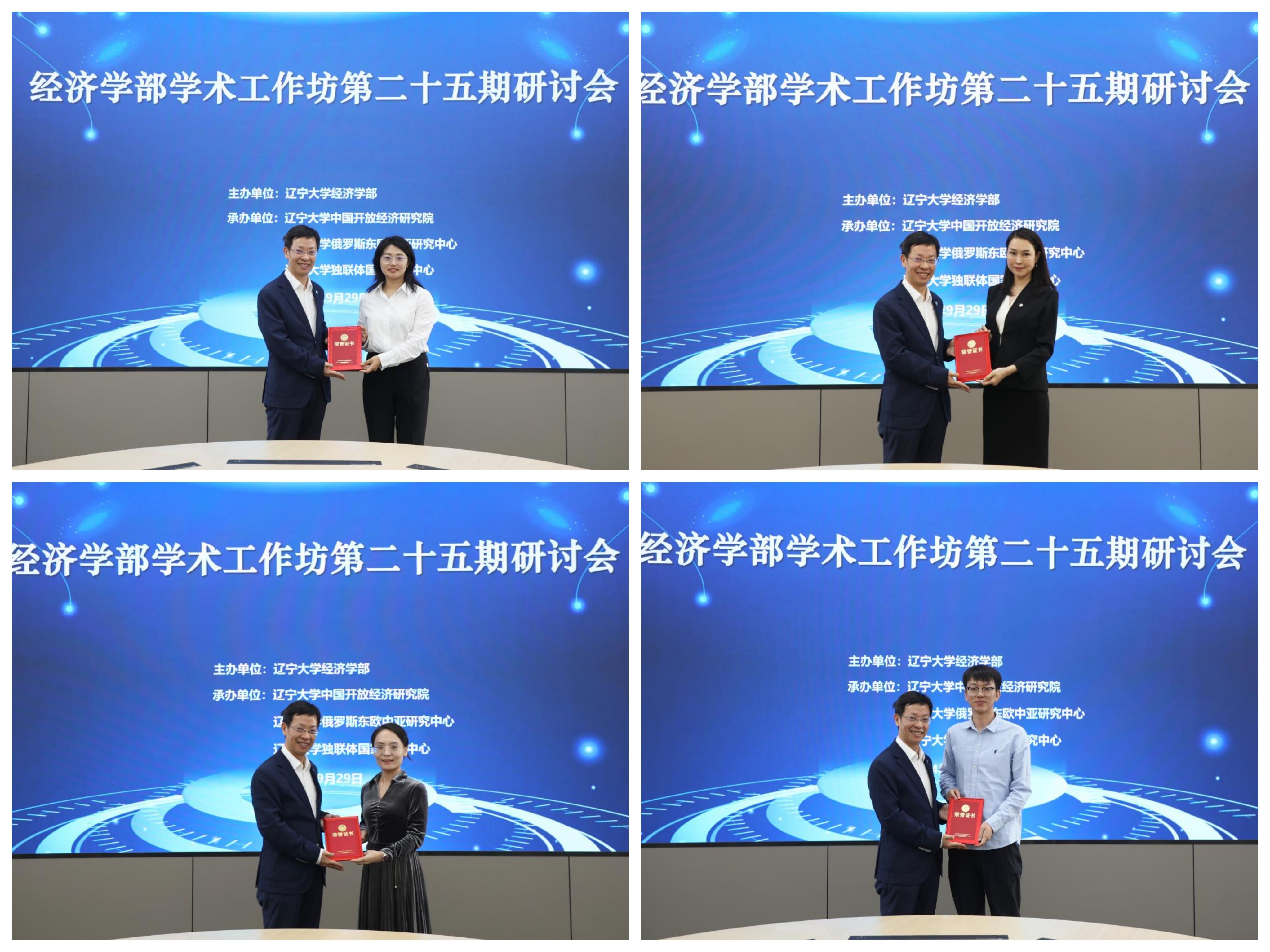 余淼杰在致辞中,提出了既高屋建瓴又切实可行的学术研究方法和思路,指出根据国家战略需求和时代发展进行科学研究的必要性,鼓励学者们聚焦于解决现实社会问题并具有实际应用价值的研究领域。他介绍了永利官网在“双一流”评估中取得的显著成绩,及在推动学术研究和提升教育质量方面的卓越表现。他进一步指出,学生应利用永利官网的综合性优势,发展对大数据的敏感度及广泛的阅读习惯,为未来的社会及职业生涯打下坚实基础。同时,他对尹如玉副教授在本期工作坊中的精彩报告给予了认可,并鼓励青年教师在国际关系与经济学等领域进行跨学科合作和研究。他指出,这种合作是推动理论与实践深度融合、创新学术成果的关键。活动结束时,余淼杰为本期主讲人尹如玉副教授,以及往期研讨会部分主讲人环境经济研究所副所长陈芙副教授、经济学院张紫薇副教授和邱国庆副教授颁发纪念证书。
