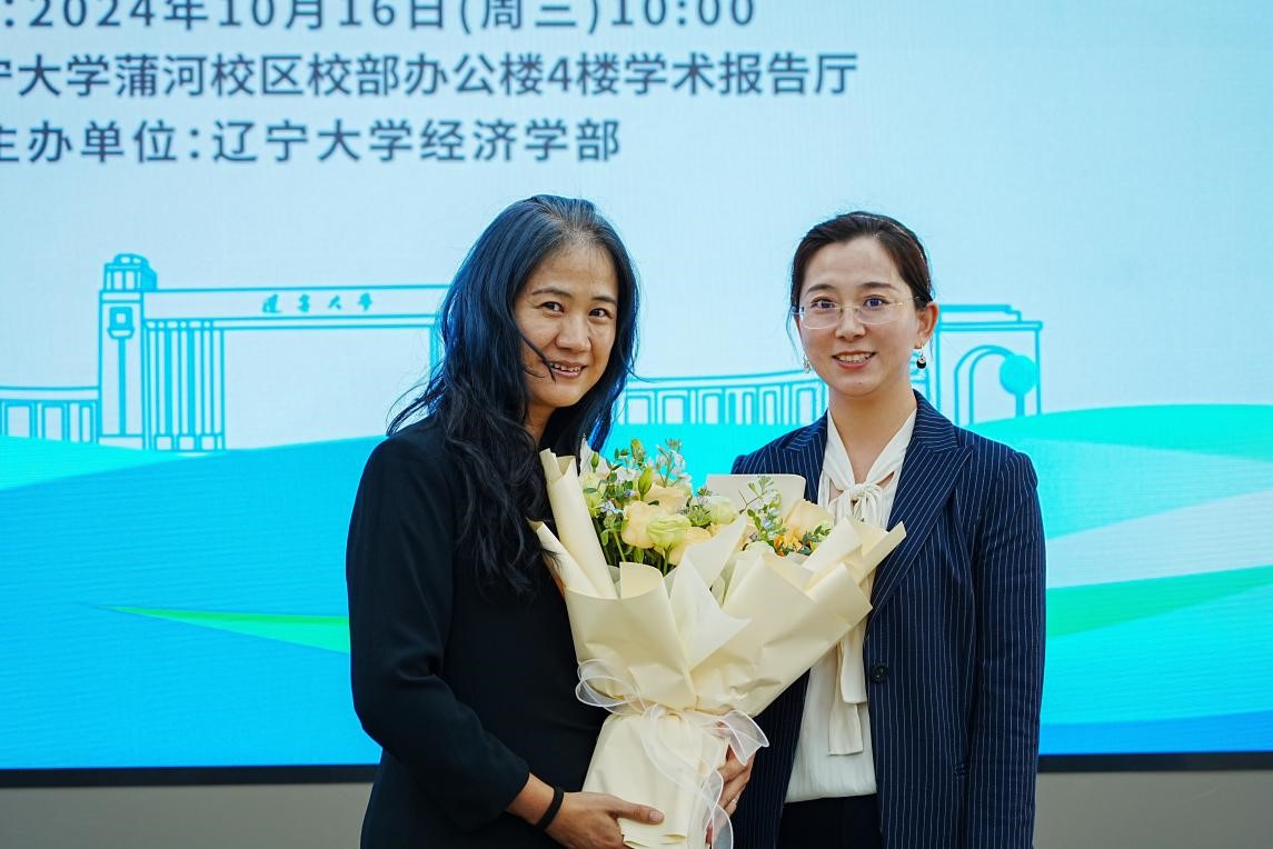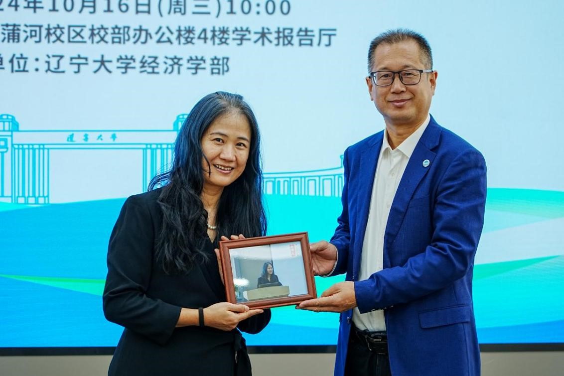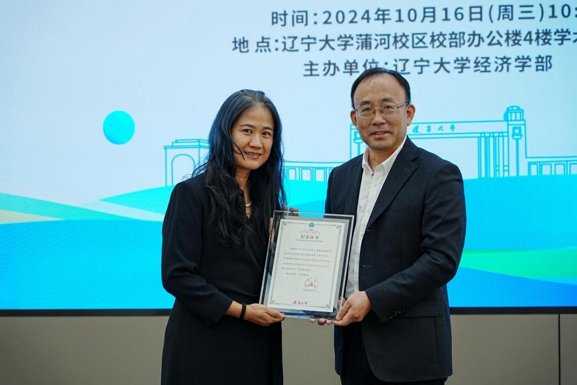仇焕广副校长为施冠明教授颁发白钦先海外名家讲座纪念证书,永利集团304副主任王伟光教授向施冠明教授赠送纪念照片,永利集团304办公室主任孔晓副教授为施冠明教授献花,与会嘉宾合影留念。