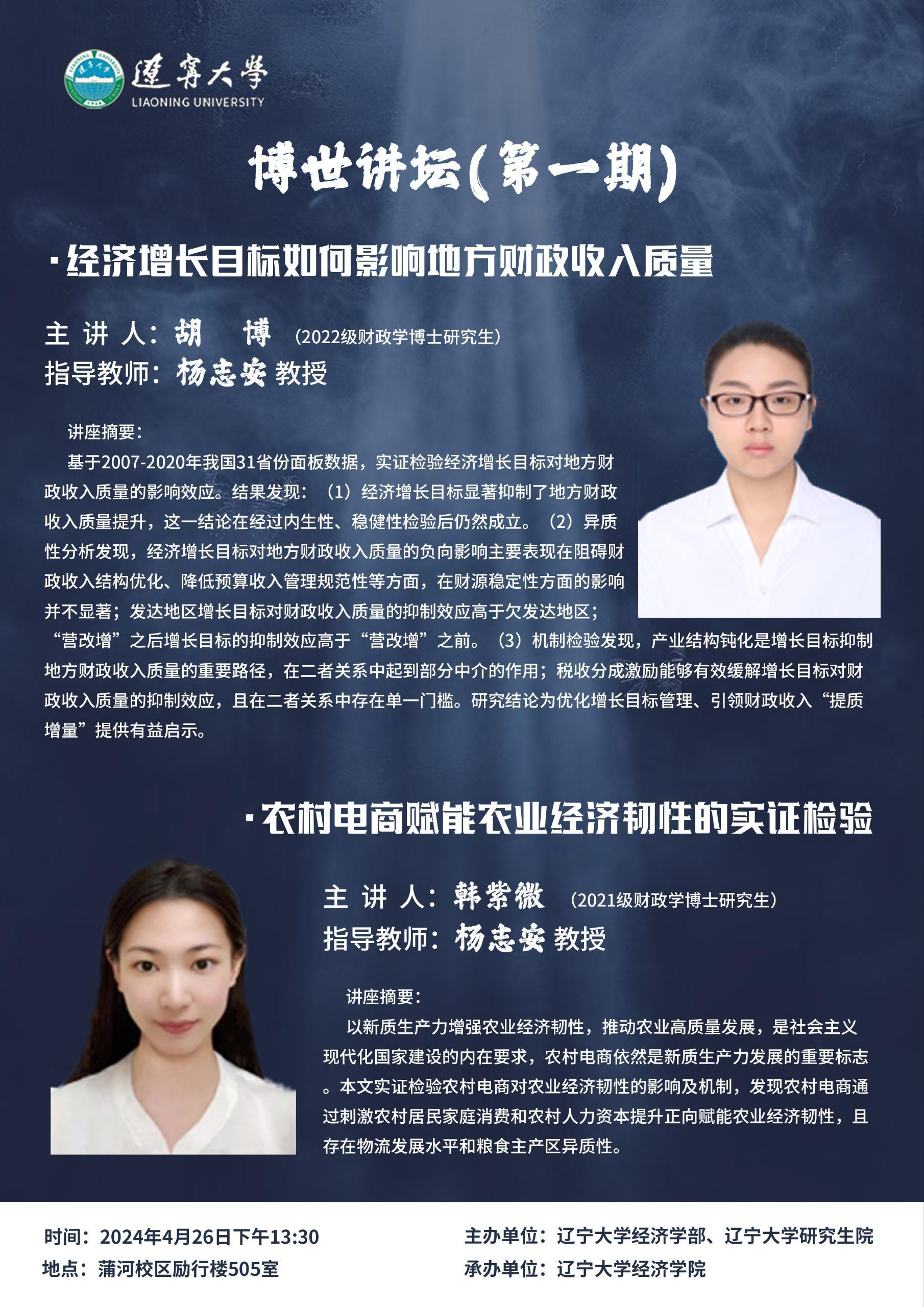 讲座摘要:基于2007-2020年我国31省份面板数据,实证检验经济增长目标对地方财政收入质量的影响效应。结果发现:(1)经济增长目标显著抑制了地方财政收入质量提升,这一结论在经过内生性、稳健性检验后仍然成立。(2)异质性分析发现,经济增长目标对地方财政收入质量的负向影响主要表现在阻碍财政收入结构优化、降低预算收入管理规范性等方面,在财源稳定性方面的影响并不显著;发达地区增长目标对财政收入质量的抑制效应高于欠发达地区;“营改增”之后增长目标的抑制效应高于“营改增”之前。(3)机制检验发现,产业结构钝化是增长目标抑制地方财政收入质量的重要路径,在二者关系中起到部分中介的作用;税收分成激励能够有效缓解增长目标对财政收入质量的抑制效应,且在二者关系中存在单一门槛。研究结论为优化增长目标管理、引领财政收入“提质增量”提供有益启示。