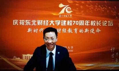 On October 8th, Dongbei University of Finance and Economics held an online Presidents’ Forum named “The New Mission of Higher Financial Education in the New Era” to celebrate the 70th anniversary of its founding. Professor Yu Miaojie, Deputy Secretary of the CPC Committee and President of Liaoning University, was invited to attend this forum and delivered a keynote speech with the theme of “Training Young Talents”.