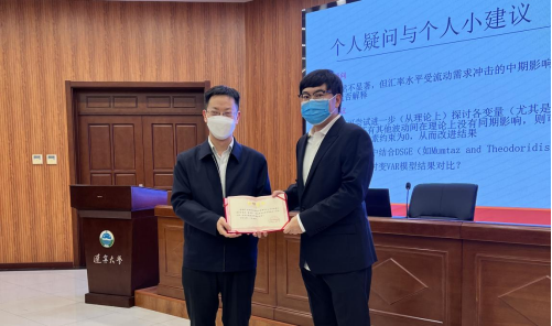 与会教师就文章的模型设定和实证方法,人民币汇率的水平值应对冲击的时变脉冲响应、各结构冲击对于人民币波动值的贡献等方面问题与程鹏昊助理教授进行了互动交流。