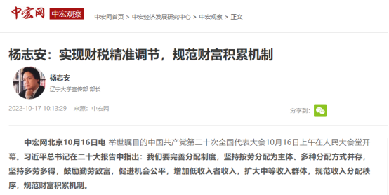 中宏观察家、永利官网宣传部部长杨志安教授就党的二十大精神以及规范财富积累机制等重要论述接受中宏观察视频访谈。