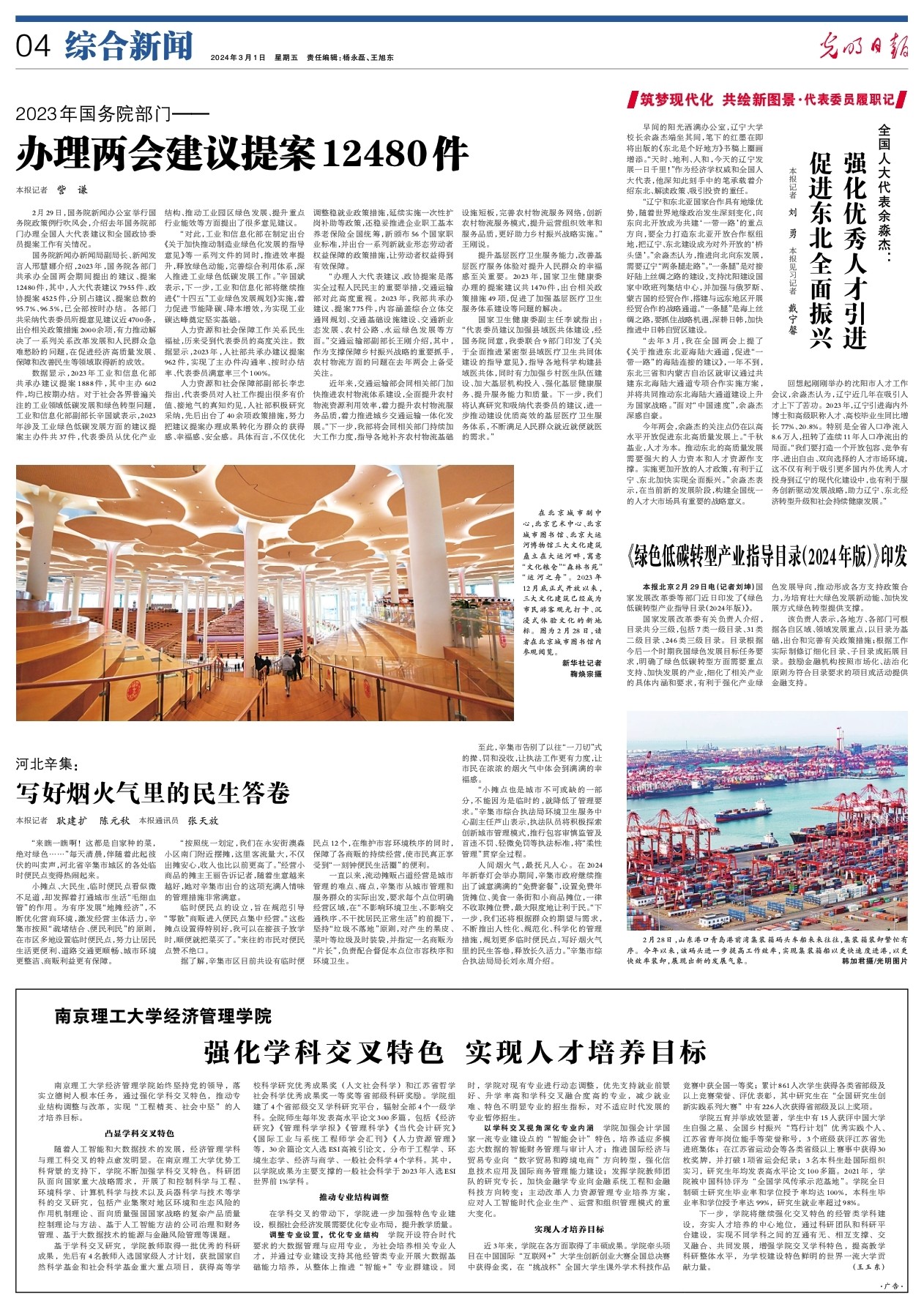 回想起刚刚举办的沈阳市人才工作会议,余淼杰认为,辽宁近几年在吸引人才上下了苦功。2023年,辽宁引进海内外博士和高级职称人才、高校毕业生同比增长77%、20.8%。特别是全省人口净流入8.6万人,扭转了连续11年人口净流出的局面。“我们要打造一个开放包容、竞争有序、进出自由、双向选择的人才市场环境,这不仅有利于吸引更多国内外优秀人才投身到辽宁的现代化建设中,也有利于服务创新驱动发展战略,助力辽宁、东北经济转型升级和社会持续健康发展。”